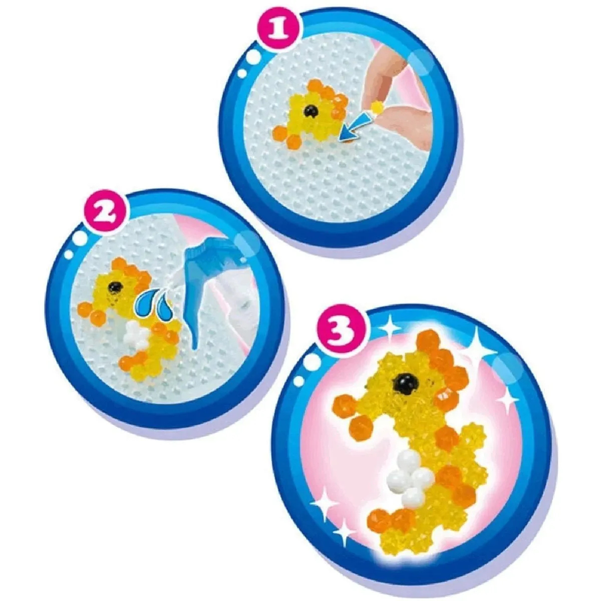 Inspire criatividade com Aquabeads, o brinquedo original ""colar com água"" de artesanato com beads.O conjunto Ocean Life inclui mais de 600 beads de star, solid e jewel em 16 cores, juntamente com 2 folhas de modelo e instruções.Use design peg incluída para fazer seu golfinho Aquabeads se moverEste conjunto requer Flip Tray Set, e Sprayer, cada um vendido separadamente e incluído nos conjuntos completos Aquabeads.Seguindo a folha de modelo, coloque os beads na bandeja para criar seu desenho.Usando o spray, borrife água sobre os beads para fazêlas colar magicamenteBrinque junto com outros conjuntos completos, com refil de tema e refil de Aquabeads.Aquabeads foi criado pela Epoch Co., Ltd. em 2004 como o brinquedo original "colar com água".Aquabeads é adequado para meninas e meninos de 4 anos ou mais. Não é adequado para crianças menores de 3 anos devido a peças pequenas.?Conteúdo da Caixa?Tamanho da embalagem: 18 x 3 x 18 cm.Este conjunto de beads de artesanato inclui mais de 600 beads em 16 cores, design pegs, 2 folhas de modelo e instruçõesOs modelos de desenhos incluem animais do mar, incluindo golfinhos, tubarões, baleias, tartarugas, cavalos marinhos e muito maisRequer o conjunto Flip Tray Set e Sprayer, cada um vendido separadamente e incluído nos conjuntos completos AquabeadsColocar simplesmente os beads seguindo a folha de modelo, borrifar água e observar os beads colarem magicamenteAquabeads é adequado para crianças a partir dos 4 anos de idade. Não é adequado para crianças menores de 3 anos devido a peças pequenas.