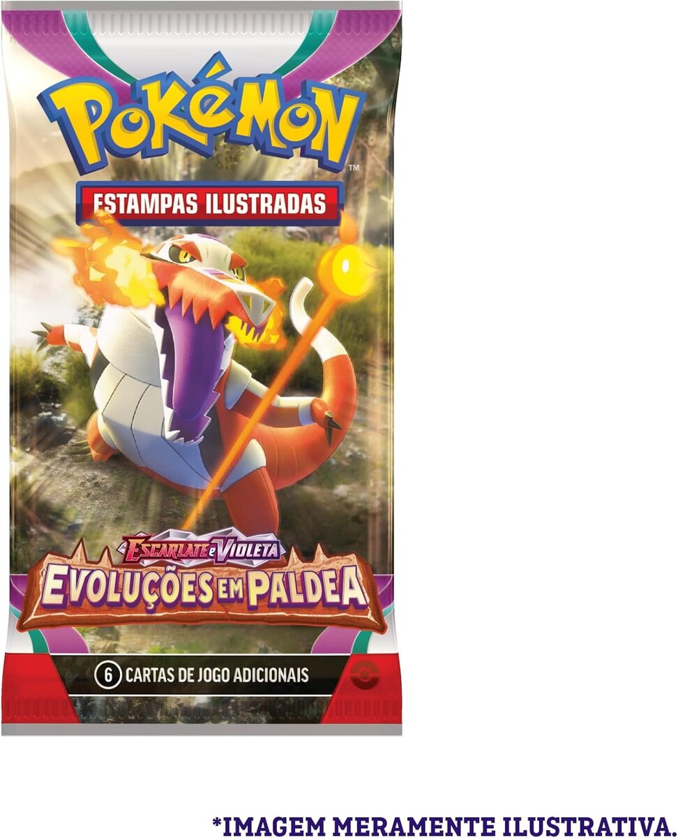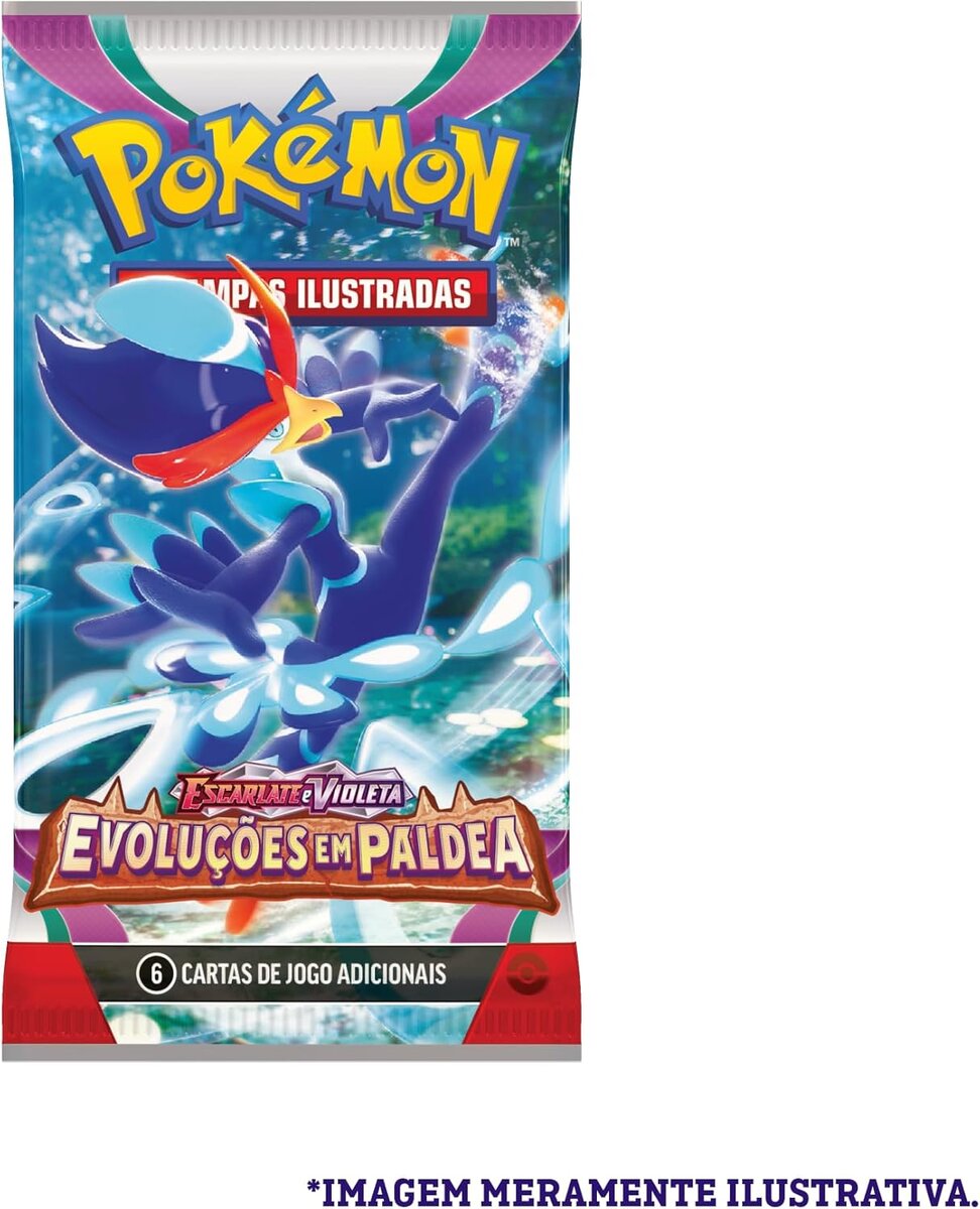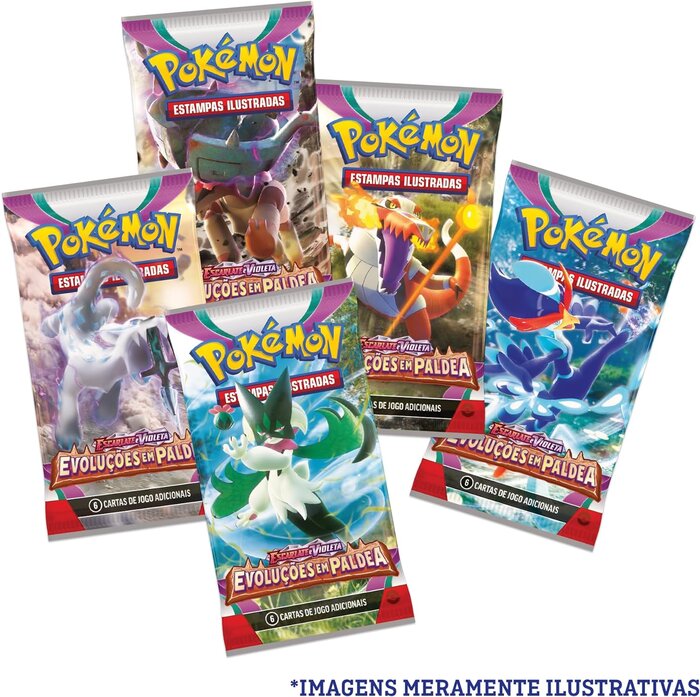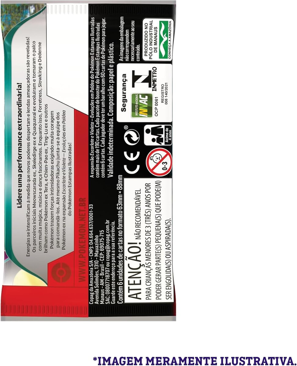 Lidere uma performance extraordinária Energias se intensificam à medida que novos poderes despertam e lendas ameaçadoras são reveladas Os parceiros iniciais Meowscarada ex, Skeledirge ex e Quaquaval ex evoluíram e tomaram o palco com muita mágica, música e dança fascinantes. Enquanto isso, Forretress, Slowking e Dedenne brilham como Pokémon ex Tera, e ChienPao ex, TingLu ex e outros Pokémon trazem forças intimidadoras exigindo muita coragem para comandálos. Até mesmo Pikachu juntase à equipe dos Pokémon ex na expansão Escarlate e Violeta Evoluções em Paldea do Pokémon Estampas Ilustradas CADA Booster VEM COM 6 CARTAS