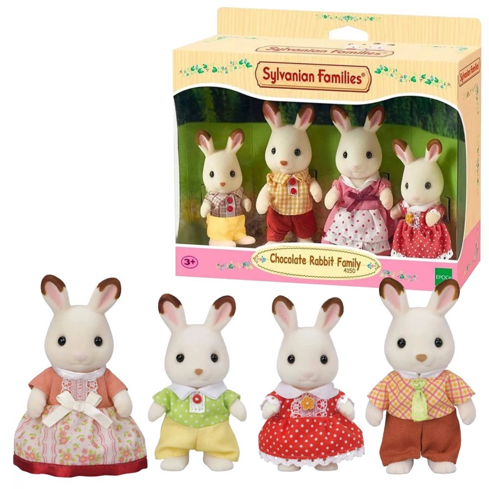 NOVA FAMILIA COELHO CHOCOLATE SYLVANIAN FAMILIESConjunto de quatro bonecos: pai Frasier, mãe Teri, menina Freya e menino Coco. Cada boneco tem as pontas das orelhas cor de chocolate. Os braços, pernas e cabeças dos bonecos podem ser movidos e colocados em diferentes posições. As roupas podem ser tiradas para mudar o look dos bonecos. Combine com Bebê Coelho Chocolate, Gêmeos Coelho Chocolate, Conjunto Cuidando de Trigêmeos,Town Girl Series Coelho Chocolate , e Avós Coelho Chocolate (vendidos separadamente) para brincadeiras imaginativas com toda a Família dos Coelhos Chocolate.